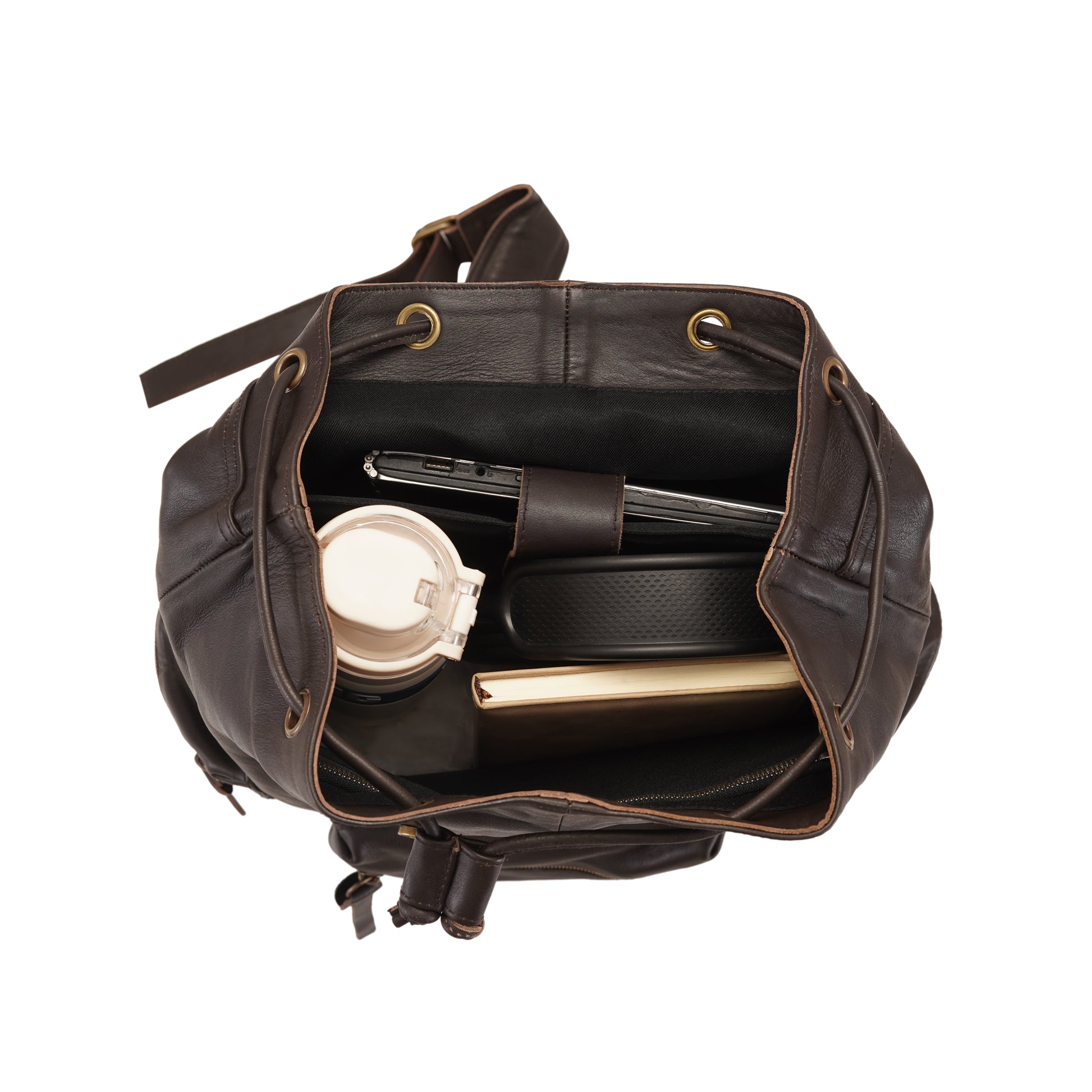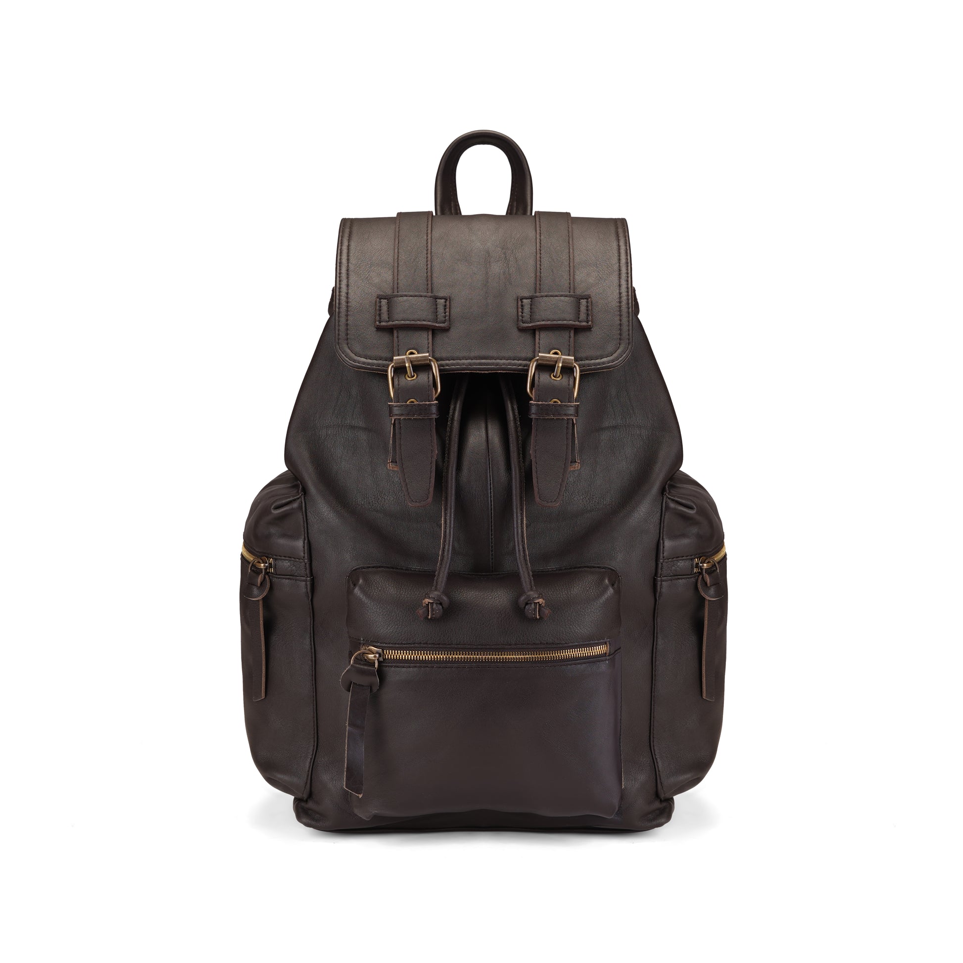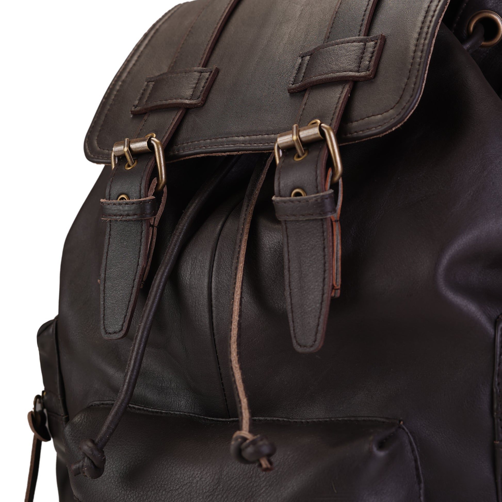 The front features two classic buckle straps that not only add a vintage charm but also enhance the security of the top flap closure. Beneath the flap, you’ll find a drawstring main compartment that ensures easy access while keeping your belongings safely enclosed.